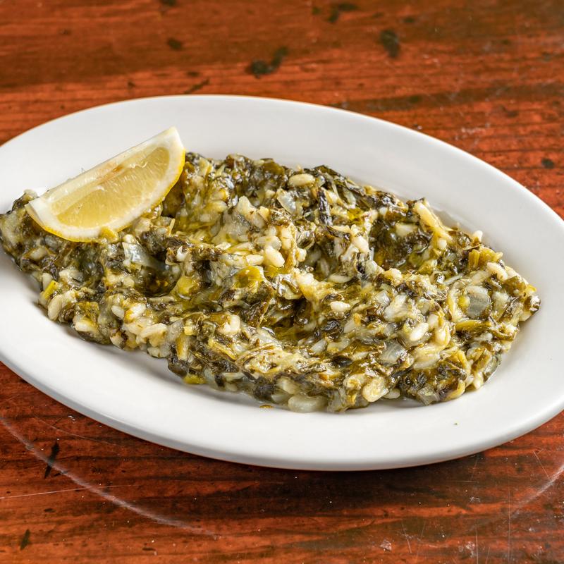 Broiled spanakorizo, lemon potato.